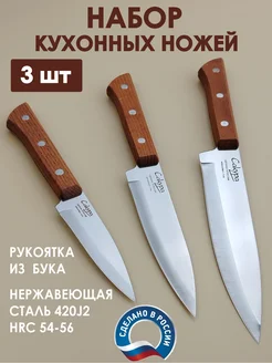 Ножи кухонные острые набор 3 штуки рукоять дерево