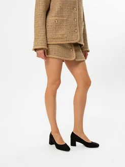 Туфли лодочки текстильные на широком каблуке