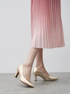 Туфли-лодочки золотого цвета на среднем каблуке