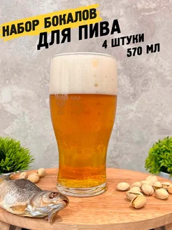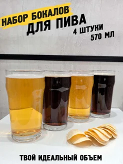 Стаканы для пива прозрачные 570 мл 4 штуки