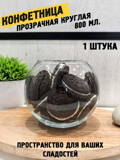 Конфетница прозрачная шар 800 мл 1 штука