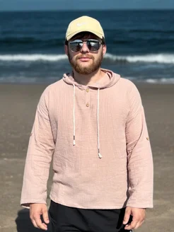 Муслиновая рубашка летняя с коротким рукавом без воротника