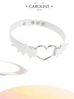Чокер кожаный белый на шею Сердце