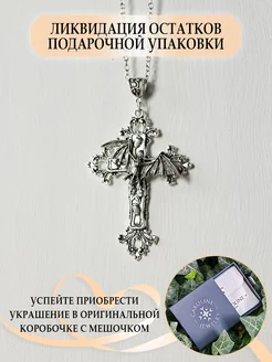 Подвеска на шею Крест с крыльями, кулон крестик на цепочке