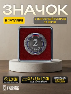 Значок 2 взрослый разряд в футляре, 12 штук