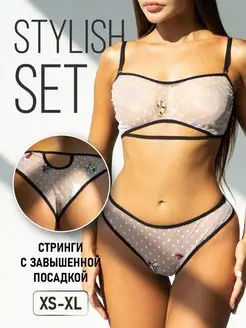 Нижнее белье женское комплект сетка браллет и трусы стринги
