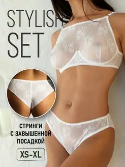Нижнее белье женское прозрачное бюстгальтер и трусы стринги