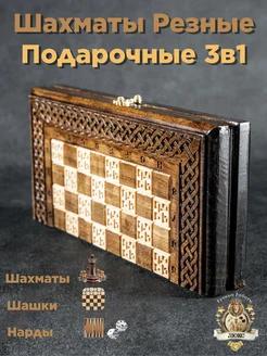 Нарды Деревянные Резные "Царственный Союз Львов" большие