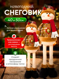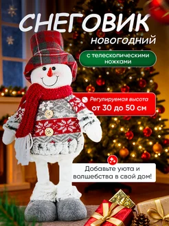 Новогодняя игрушка снеговик на телескопических ножках 50см