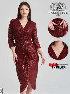 Платье праздничное вечернее миди блестящее пайетки