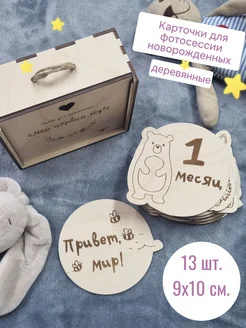 Деревянные карточки для фотосессии новорожденных по месяцам