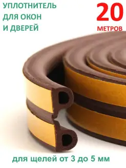 Уплотнитель для окон и дверей, D образный, 20 метров