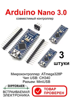 Nano 3.0, ATmega328P, CH340С контроллер, без кабеля, 3 штуки