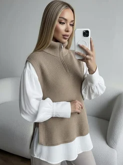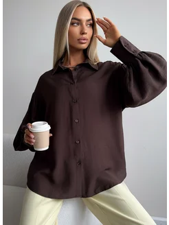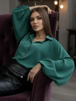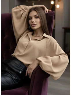 Блузка рубашка шелковая нарядная с объемными рукавами