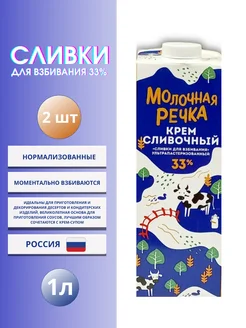 Сливки 33% для взбивания кондитерские 2 шт по 1л