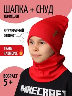 Шапка зимняя для мальчика подростка с флисом и снуд