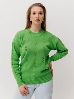 Джемпер вязаный с круглым вырезом свитер трикотажный