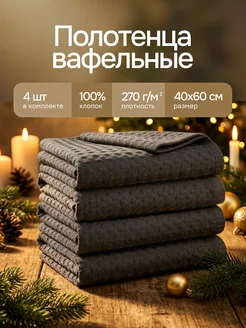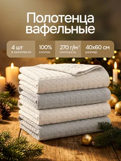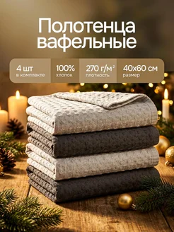 Полотенце кухонное вафельное хлопок набор 4 штуки 40х60