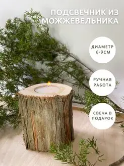 Свеча с подсвечником из можжевельника