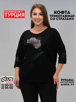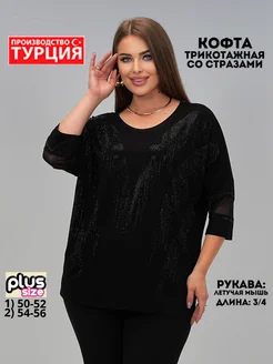 Кофта нарядная трикотажная больших размеров со стразами