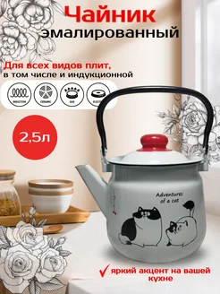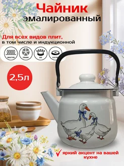 Чайник эмалированный 2,5 литра Гуси подвижная ручка