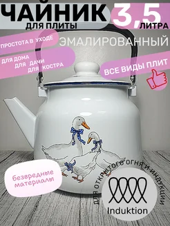 Чайник эмалированный 3,5 литра Гуси, подвижная ручка