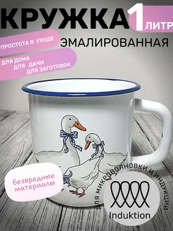 Чайник эмалированный 1,5 литра Гуси подвижная ручка