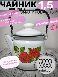 Чайник эмалированный 1,5 литра Малина подвижная ручка