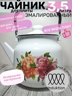 Чайник эмалированный 3,5 литра ПИОНЫ, подвижная ручка