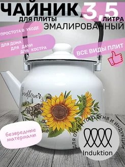 Чайник эмалированный 3,5 литра Подсолнухи, подвижная ручка
