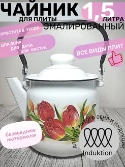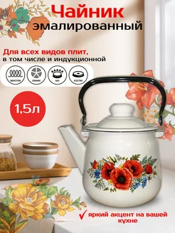 Чайник эмалированный 1,5 литра Тюльпаны подвижная ручка