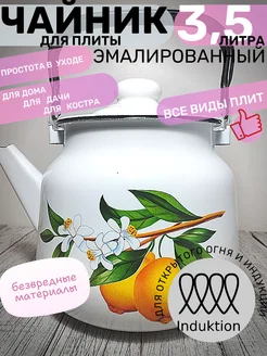 Чайник эмалированный 3,5 литра Лимоны, подвижная ручка