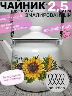 Чайник эмалированный 2,5 литра Подсолнухи, индукция