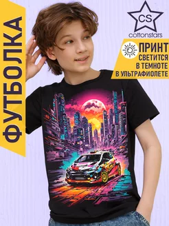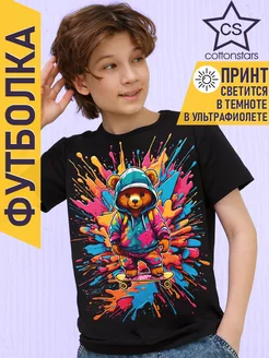 Футболка подростковая со светящимся принтом Неоновый мишка