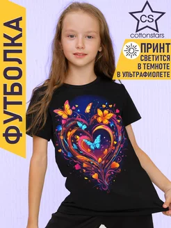 Футболка детская со светящимся принтом с бабочкой