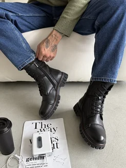 Зимние ботинки высокие черные кожаные с мехом