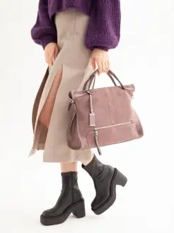 Сумка сэтчел из натуральной кожи и замши через плечо