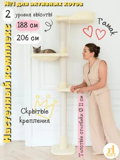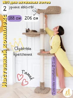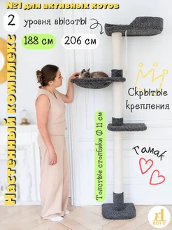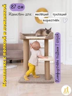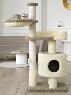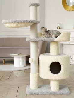Когтеточка с домиком и лежанкой "Ольха с гамаком" 130 см