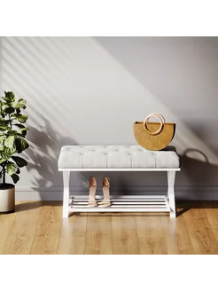 Банкетка для обуви в прихожую Буфф 90х40х46 Velutto 51 БЕЛ