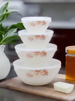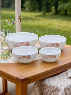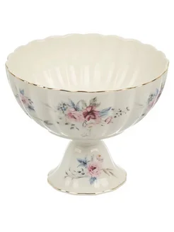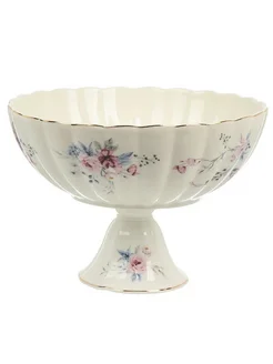 Фарфоровая фруктовница на ножке 20 см белая с цветами