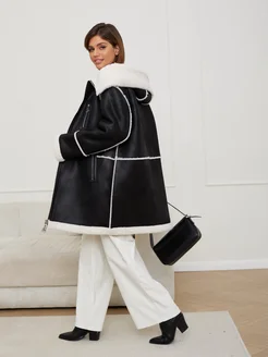 Дубленка искусственная зимняя с капюшоном