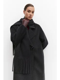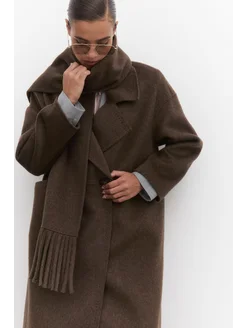 Пальто шерстяное длинное оверсайз с шарфом