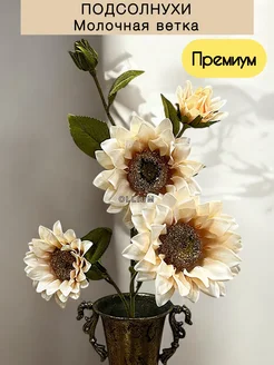 Искусственная премиум ветка молочных подсолнухов 1шт