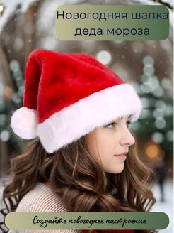 Новогодний колпак карнавальный теплый шапка Деда Мороза