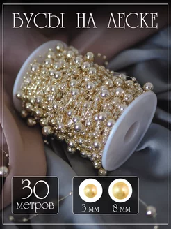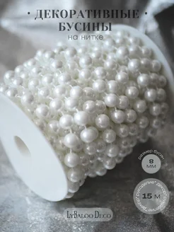 Жемчуг на нитях 8 мм, 15 метров, белый