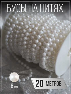 Жемчуг на нитях 6 мм, 20 метров, белый