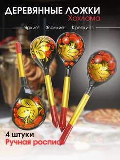 Ложки Хохлома деревянные, набор 4 шт