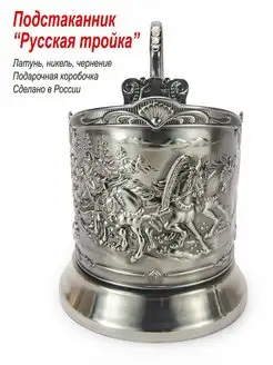 Подстаканник "Русская тройка" Кольчугино, латунь, чернение