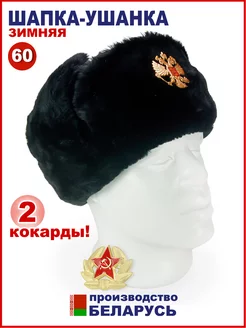 Шапка ушанка зимняя, черная, 60, с двумя кокардами