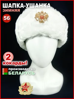 Шапка-ушанка зимняя, белая, 56, с двумя кокардами